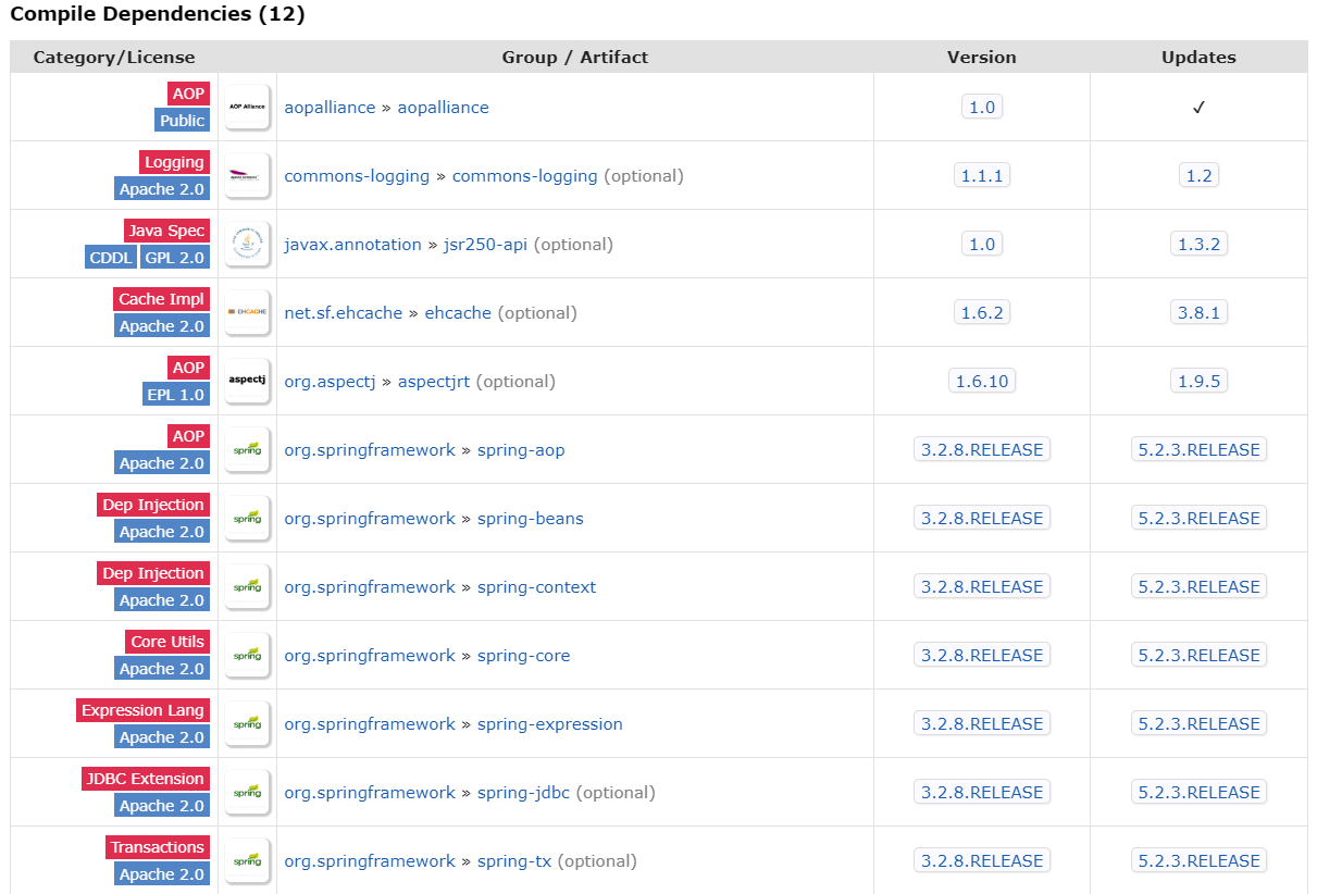 처음에 들어가면 버전이 많아서 당황할 수 있다. Spring Security는 Spring FrameWork의 버전과 연관성이 있으므로 자신이 가지고 있는 버전에 따라 Maven을 가져가면 된다.