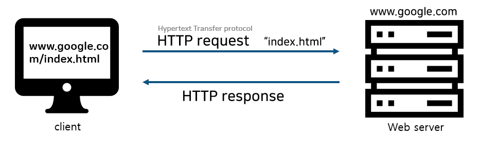 서버/클라이언트 모델을 따르며 클라이언트가 서버에게 HTTP 요청을 보내면 서버는 요청된 데이터를 HTTP 응답으로 돌려준다.